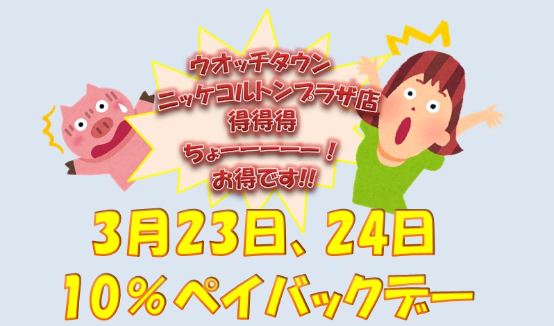 ウオッチタウンニッケコルトンプラザ店 超絶!お得な2日間!!