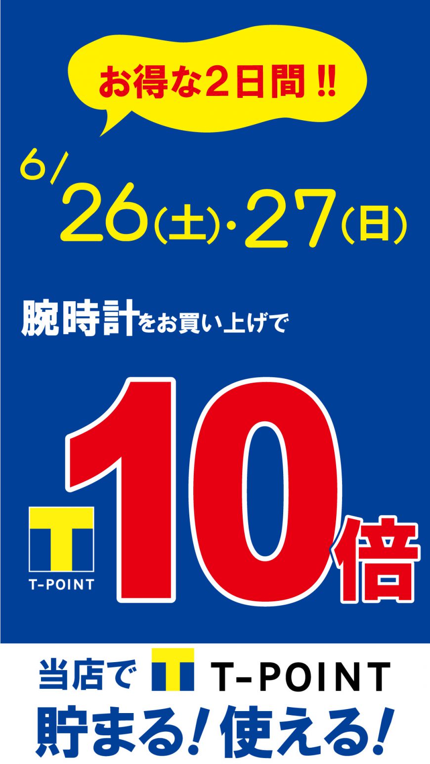 2021/06/23 T-POINT10倍!! 6月26日(土)・27日(日)のたった2日間限定!! 腕時計ご購入でT-POINT10倍!!! この機会をぜひともお見逃しなく!!! ウオッチタウン 横須賀コースカ店 住所:〒238-0041 神奈川県横須賀市本町2-1-12 Coaska Bayside Stores 3F 営業時間:10:00~21:00 お気軽にお問い合わせください Tel046-825-0500 店舗詳細を見る 店舗ブログトップへ 前の記事 次の記事