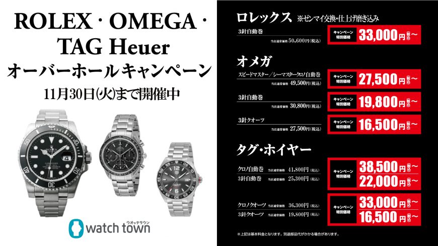 ウオッチタウン金沢八景店ではオーバーホールキャンペーンを開催しています。