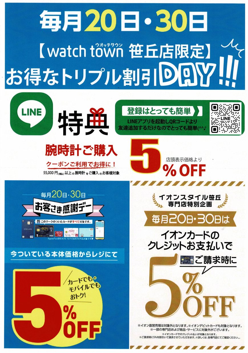 ウオッチタウン笹丘店限定のお得なお知らせ。
