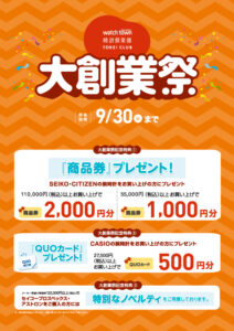 2025/09/29 ★大創業祭間もなく終了★ ウオッチタウン新浦安店では9/30(火)まで大創業祭を開催しております! ぜひこのお得な機会をお見逃しなく(^^)/ ウオッチタウン 新浦安店 住所:〒279-0012 千葉県浦安市入船1-4-1 イオン新浦安ショッピングセンター3F 営業時間:9:00~21:00 / 定休日なし お気軽にお問い合わせください Tel047-301-2920 店舗詳細を見る 店舗ブログトップへ 前の記事 次の記事