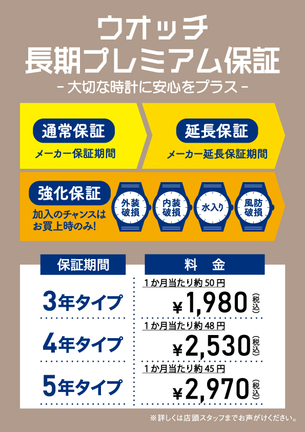 本日はご好評頂いておりますウオッチ長期プレミアム保証の