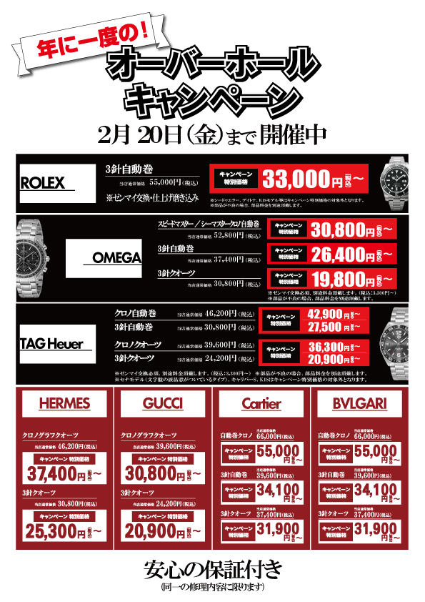 自動巻きモデルはゼンマイ交換代金が別途となっています