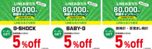 G-SHOCK・BABY-Gが店頭表示価格から更に5%OFFになる
