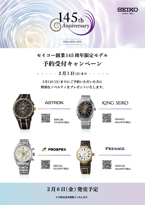 SEIKO145th記念★新商品予約キャンペーン第1弾☆