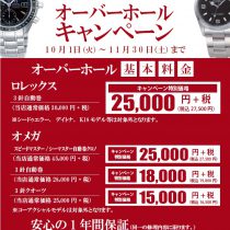 ただいまウオッチタウンではROLEXとOMEGAを対象にオーバーホールキャンペーンを開催致しております。